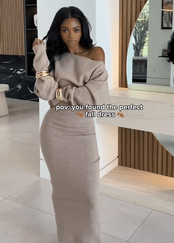 Meet the dress everyone’s obsessed with this season. The relaxed off-shoulder design + body-hugging knit makes it both flattering and comfy at the same time.