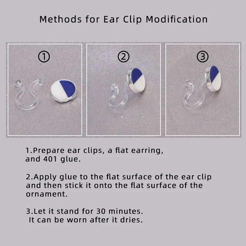 The modification of these ear clips is extremely simple. You can just put them on and then wear them. They won't damage the earrings and can be reused. The modification steps are shown in the picture below for your reference.