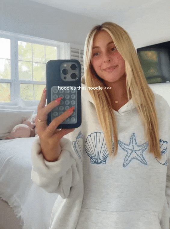 For the girls who live for seaside sunsets Wrap yourself in pure comfort with this soft neutral hoodie featuring ocean-inspired shell prints. Pair it with your favorite shorts for the ultimate chill, beachy look all season long.
